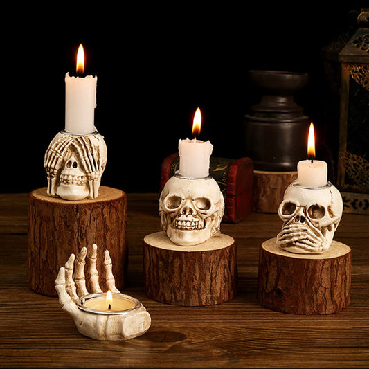 💀🕯️ Eerie Glow: Halloween Skull Candle Holder Set - Illuminate Your Spooky Night! 🕯️💀