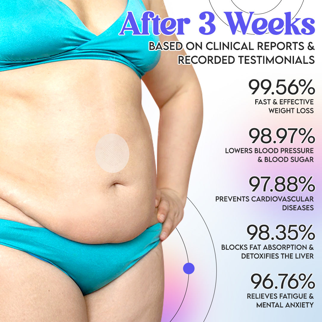My metabolism is as slow as a snail. but I actually lost 29 lbs in a month. I didn't change my diet—other than not drinking soda and coke anymore. my diet was the same as before. At first. I wasn't sure if it would help me lose weight; it felt so easy to apply. and after a few hours. my body felt a gentle warmth. but it didn't cause irritation or discomfort. Then I tried on a pair of pants. and I think I lost about 8 to 9 inches off my waistline! On top of that. I have more energy than ever. my skin looks better. and I feel like a completely different person. Usually. I just want to sit on the couch and do nothing. with no motivation. Now. I can play with my kids. enjoy my daily walks. and do some light exercise. I will continue to use these patches because they give me the energy and motivation to become healthier. In fact. this is the longest I have ever stuck to a healthy routine! - Sheila Williams ⭐⭐⭐⭐⭐